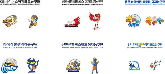WKBL 각 구단 로고, 엠블럼, 마스코트 glass 일반 3 10367 2008.03.14 19:42 -0001.11.30 00:00 WKBL.sit (0byte) + 177 [여자프로농구단] KB 세이버스, 금호생명 레드윙스, 용인 삼성생명 비추미, 신세계 쿨캣, 신한은행 에스버드, 우리은행 한새