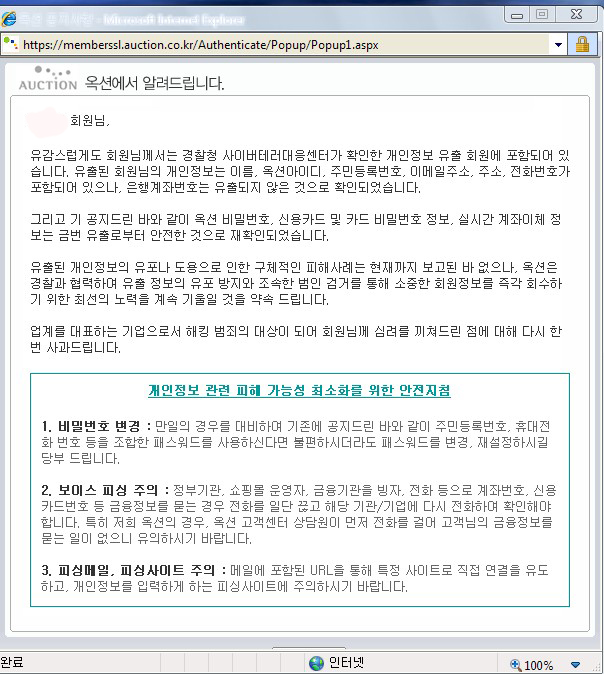옥션 해킹에 관한 뉴스