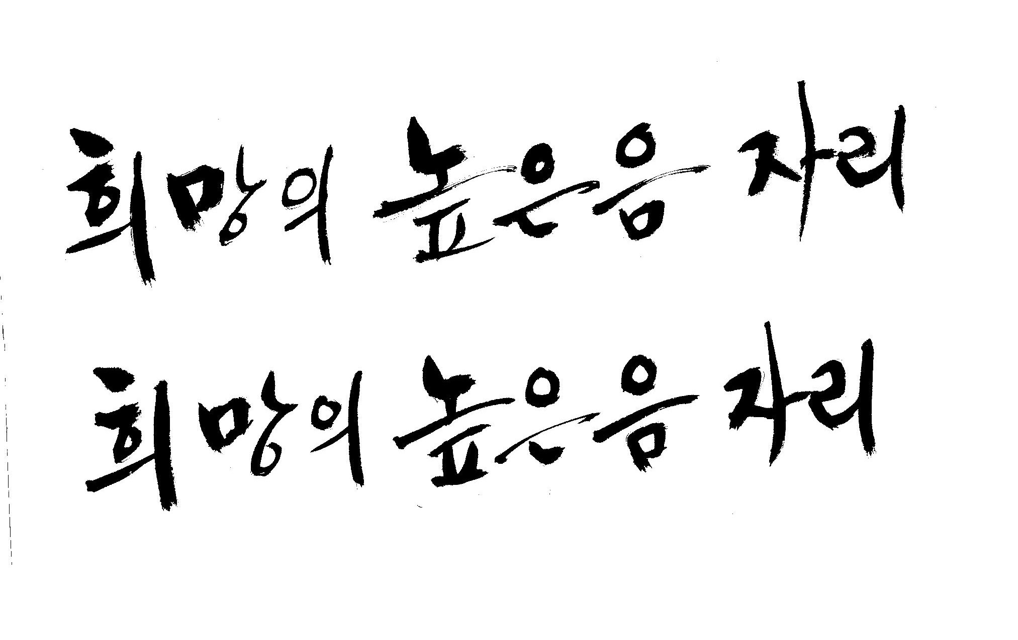 저도 캘리좀부탁이요 ^^;; 김철호 일반 0 6352 2009.01.14 10:59 > > 희망의 높은음자리 > > 감사합니다 ^^ 꼭부탁드려욧 ㅎㅎㅎ > 좋은 글이라서 신경썼는데 만족할 만큼 않나왔네요.. 유용하게 쓰시길...